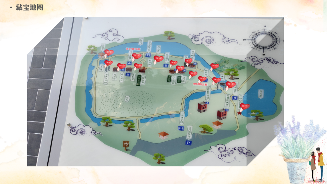 工作人员提前在场地内放置宝藏,队员根据工作人员提供的地图,在规定的时间内寻找宝藏,寻宝期间队员可以原地停留但不能折返,只有完成整个路线到终点领取一面小红旗后,方可折回空地集合。队员需按照工作人员的要求,在指定的打卡点拍照(必须男女合照)。